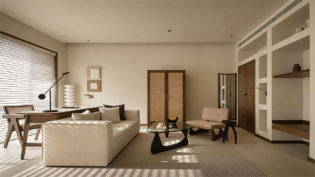 在成都工装设计领域,酒店民宿的空间营造早已超越基础装修的范畴,成为融合在地文化、居住体验与美学表达的系统工程。这套以侘寂风为核心的成都酒店民宿设计方案,以精品客房为载体,用自然材质与光影叙事,打造出兼具松弛感与实用性的商业空间,为成都工装设计市场提供了可落地的高端民宿装修范本。