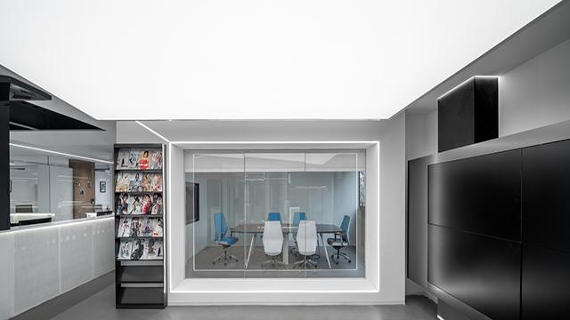 现代办公空间,水波纹吊顶 + 线性灯的灯光设计有哪些技巧?